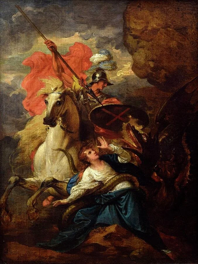 The weapon that St. George defeated the dragon, they were called Ascalon. On the site where the dragon fell, the king built a church dedicated to the Blessed Virgin Mary and St. George.